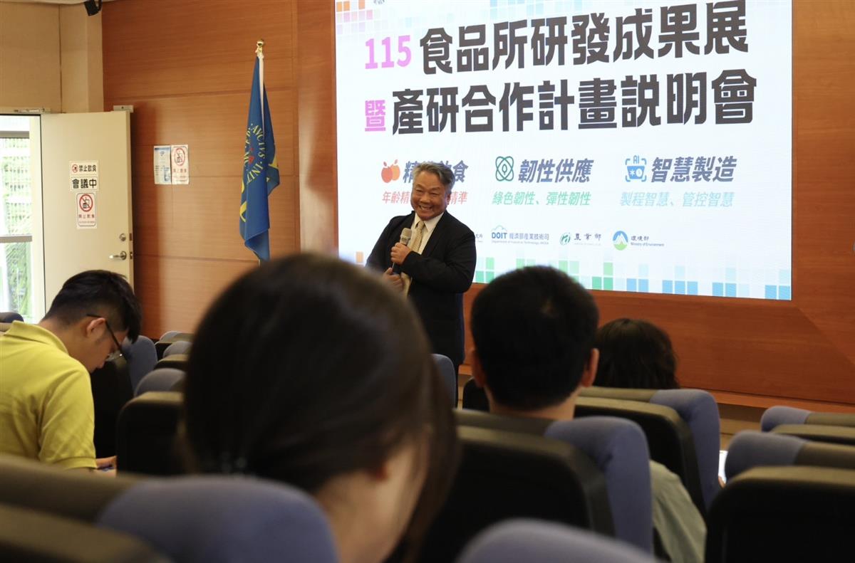 食品所副所長簡相堂介紹115年度食品所研發成果說明會